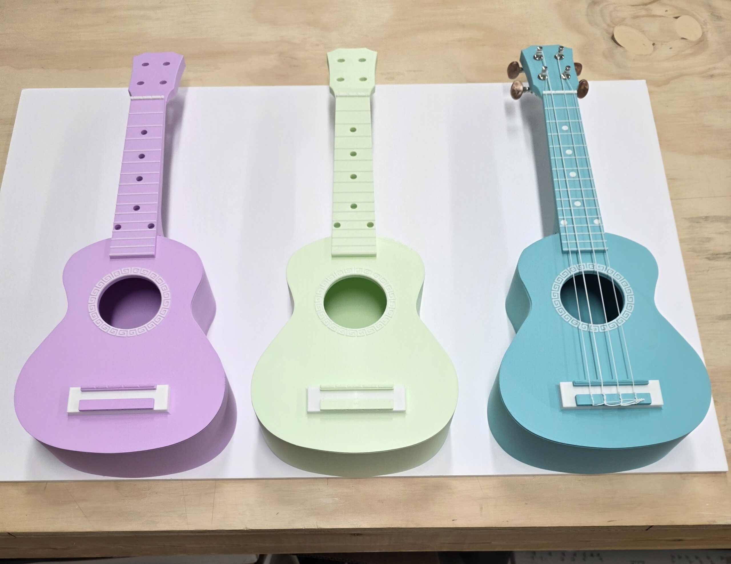 3D Printing is becoming more mainstream every day, and the potential of creating practice-quality instruments is great: everything from violins and ukuleles to flutes and horns. In most cases, additions such as standard strings and hardware are easily purchased at local music stores or online. Many designs are available as open-source files and there is an ever-growing body of information available through web searches and in social media groups.